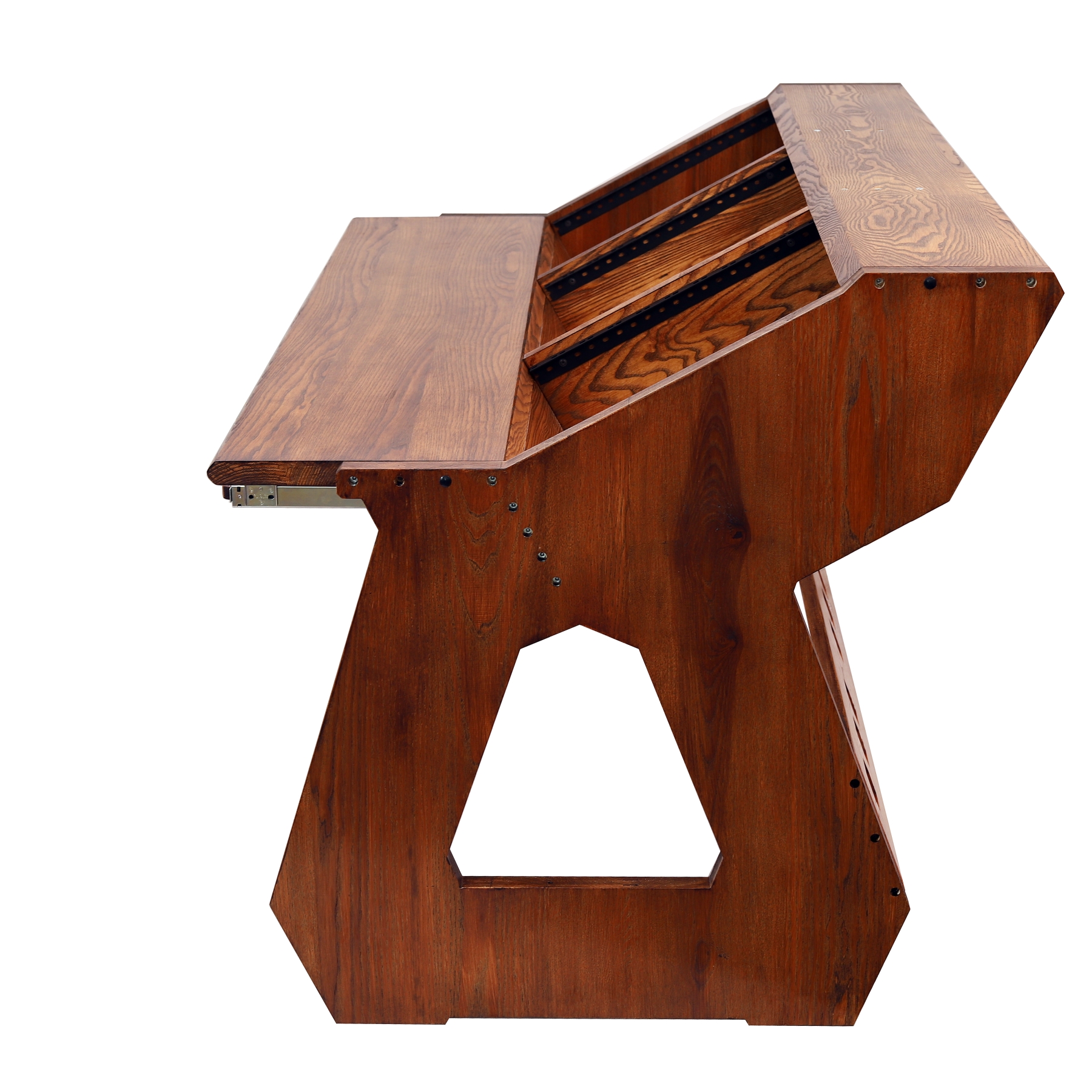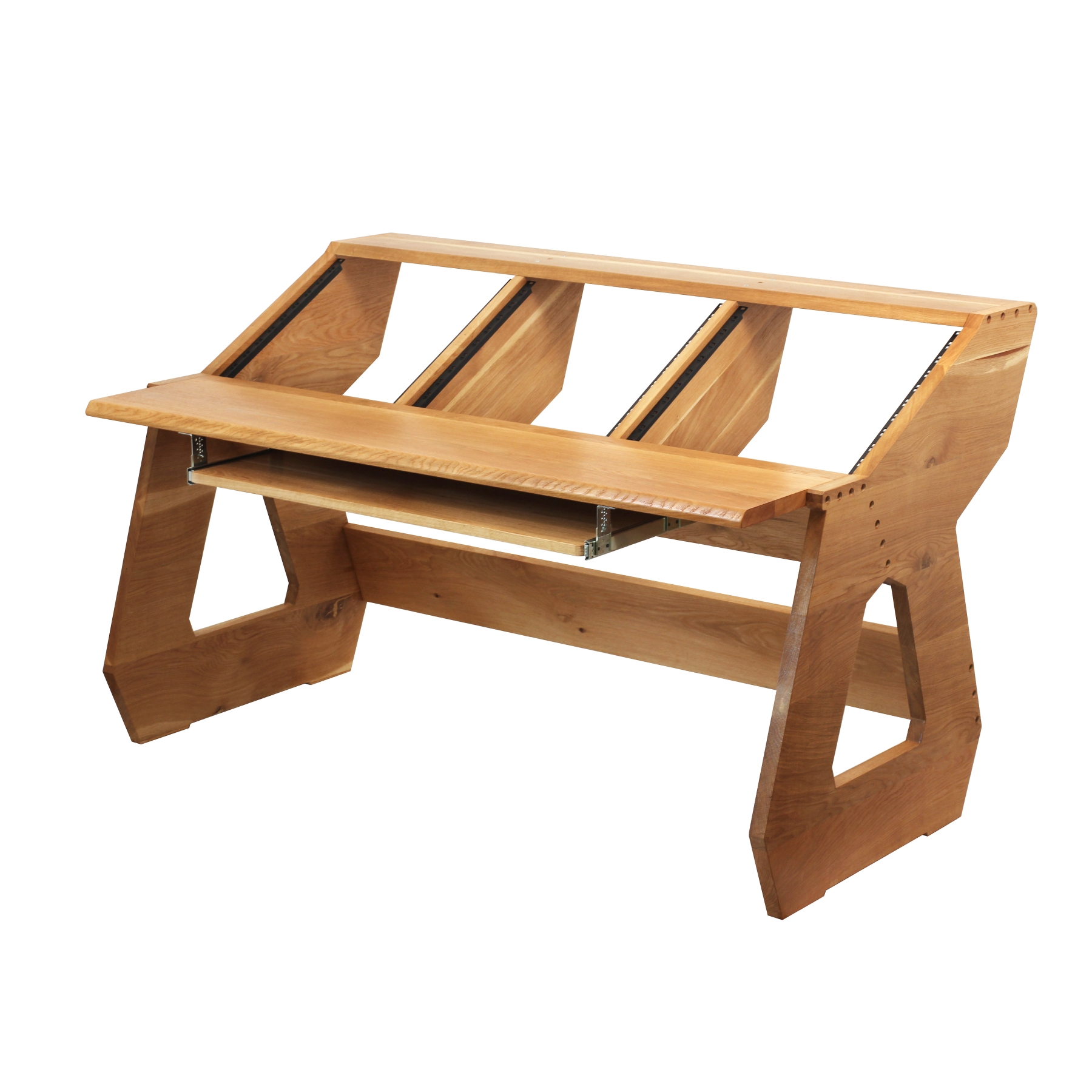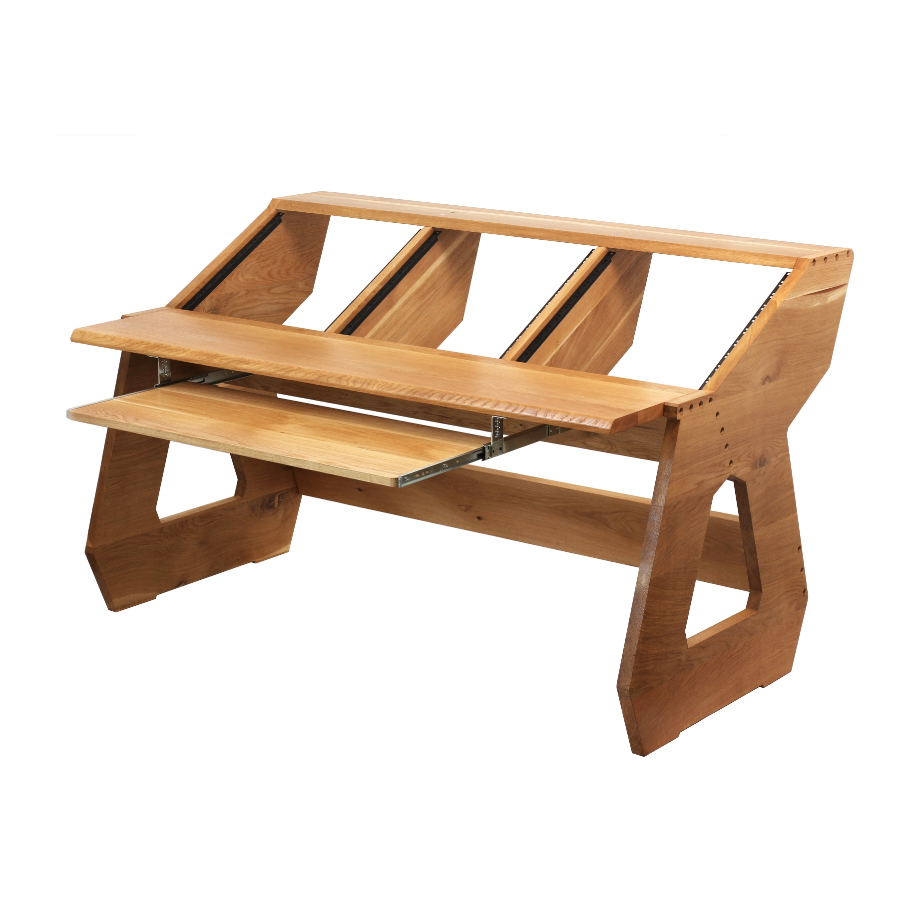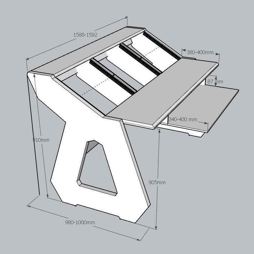 Biurko ma zamontowane szyny rack firmy Adam Hall.