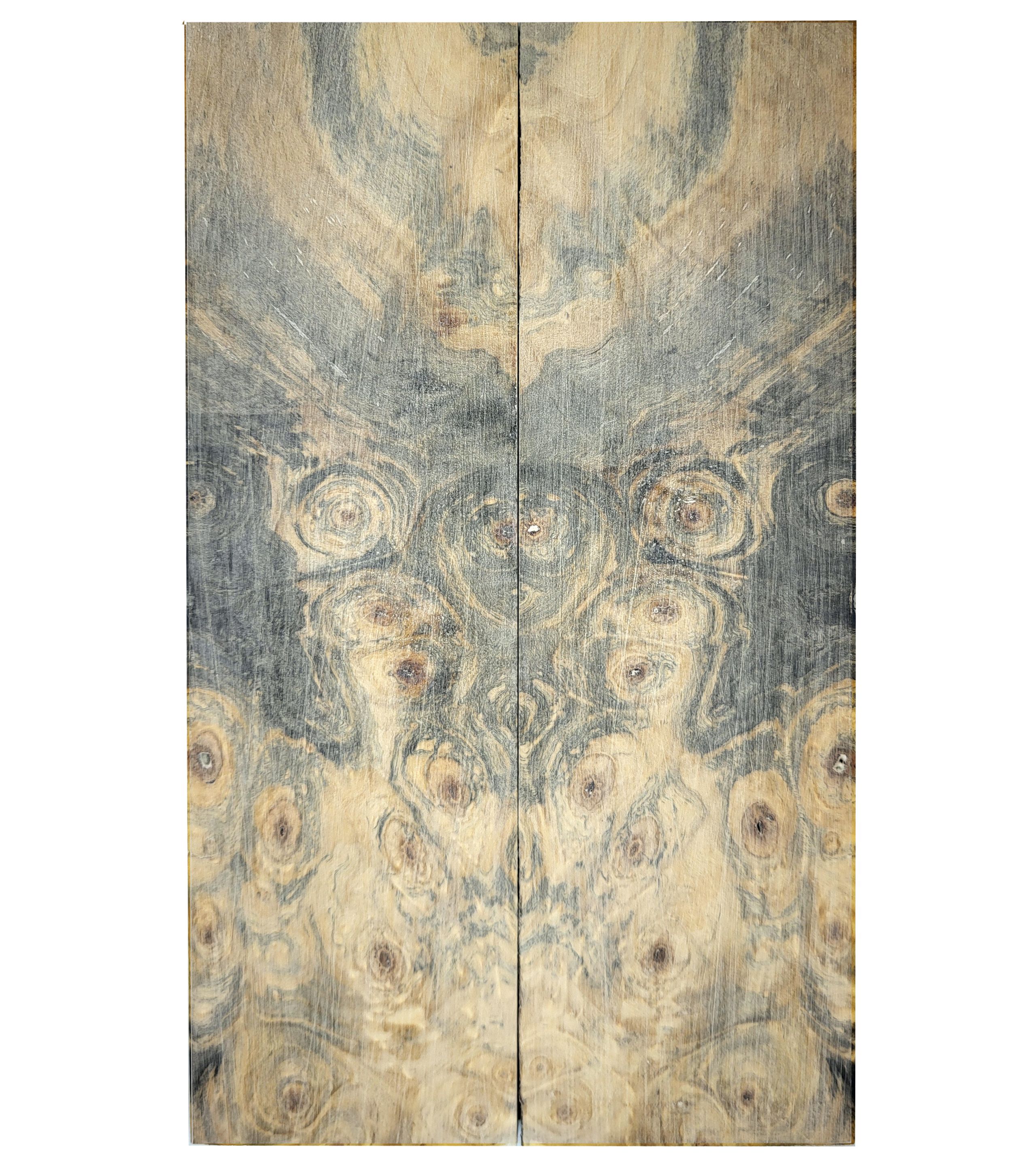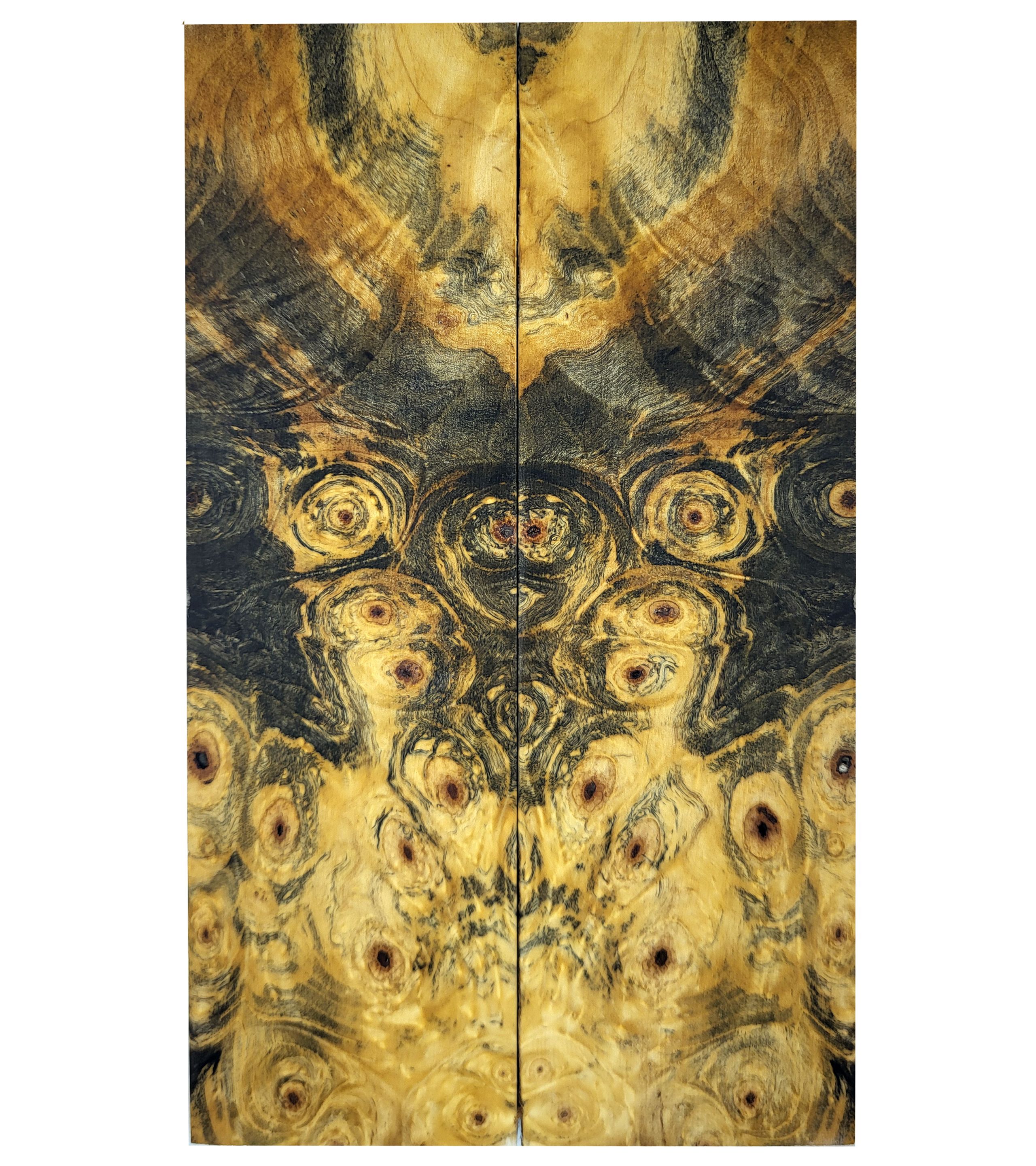 Drewno stabilizowane Buckeye Burl. Jest to czeczot kasztanowca amerykańskiego Okładki symetryczne typu czeczot. Posiada ubytki i wtrącenia kory. wymiary każdej z okładek 8-9 x 54 x 182 mm Jest to jedna z najoryginalniejszych kolorystycznie czeczot na świecie. Po rozcięciu charakteryzujące się wielokolorowym, kontrastowym i zróżnicowanym złoto-rdzawo-czarnym usłojeniem. Występują oczka i złożone słoje. Zdjęcia przedstawiają sprzedawane okładki na mokro i sucho, druga strona na mokro. Oferowane bloczki i okładki są po obróbce na strugarce i grubościówce - jest to odpowiednik papieru ściernego 100-120 . Nie szlifujemy drewna przed wysyłką. Podany wymiar może mieć +/- 2 mm różnicy w podanych wyżej wymiarach.