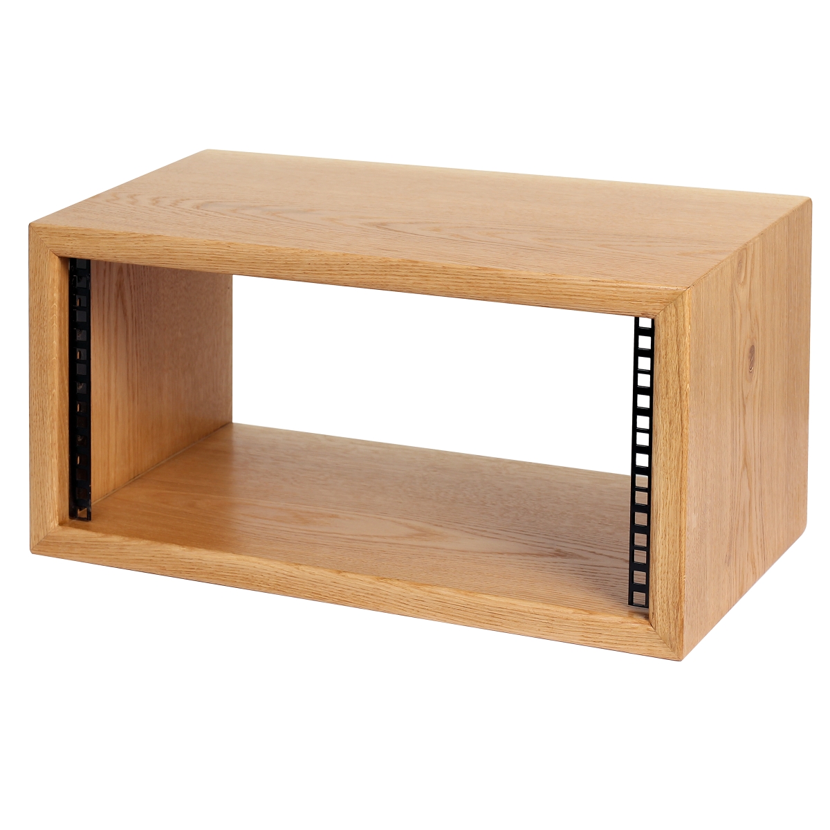 Stojak typu Rack 19" wykonany z litego drewna dębowego, wykończony trzema warstwami lakieru satynowego.