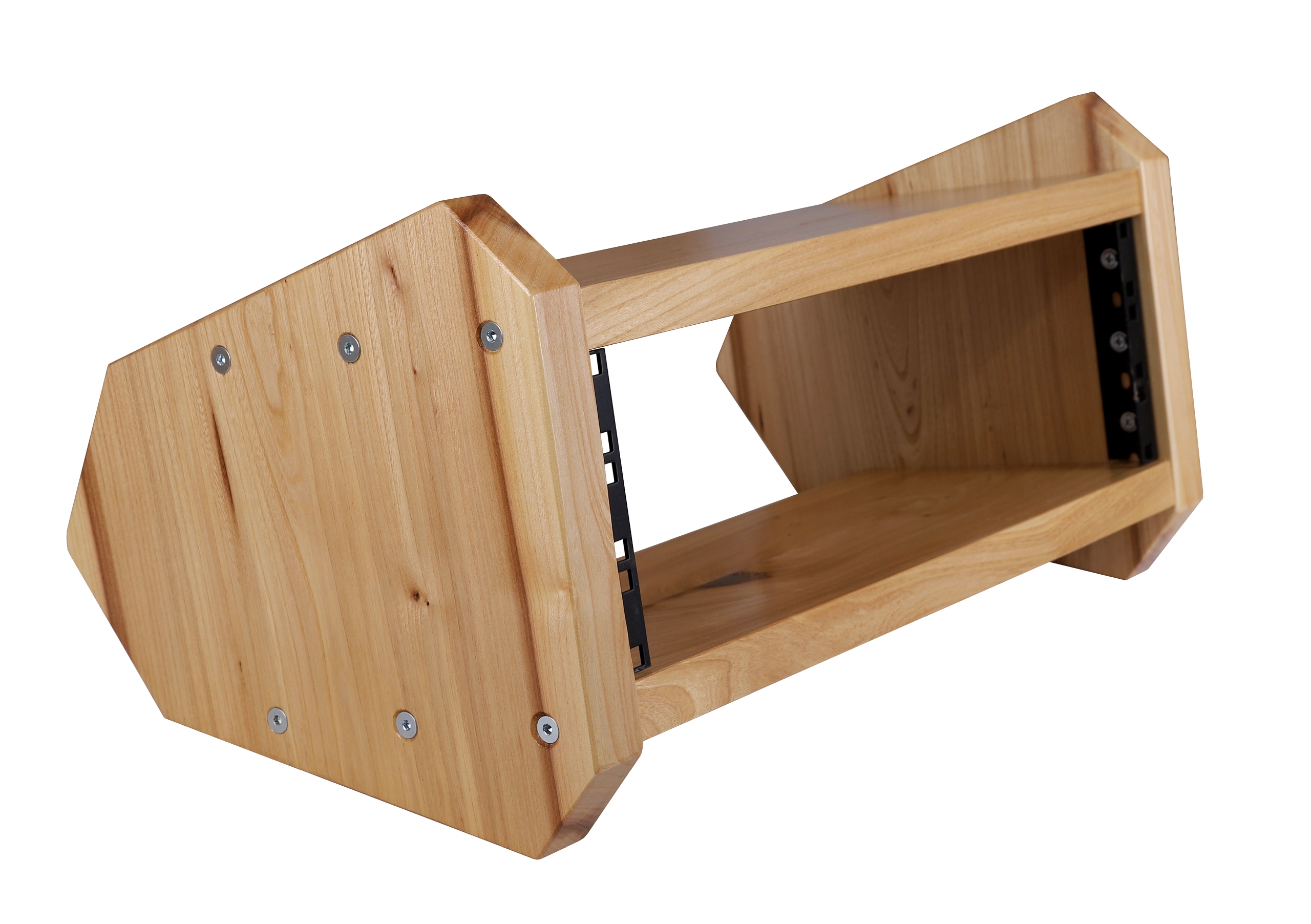 Przykładowy stojak na zdjęciach to rack 3U z litego wiązu naturalny kolor drewna, lakierowany.