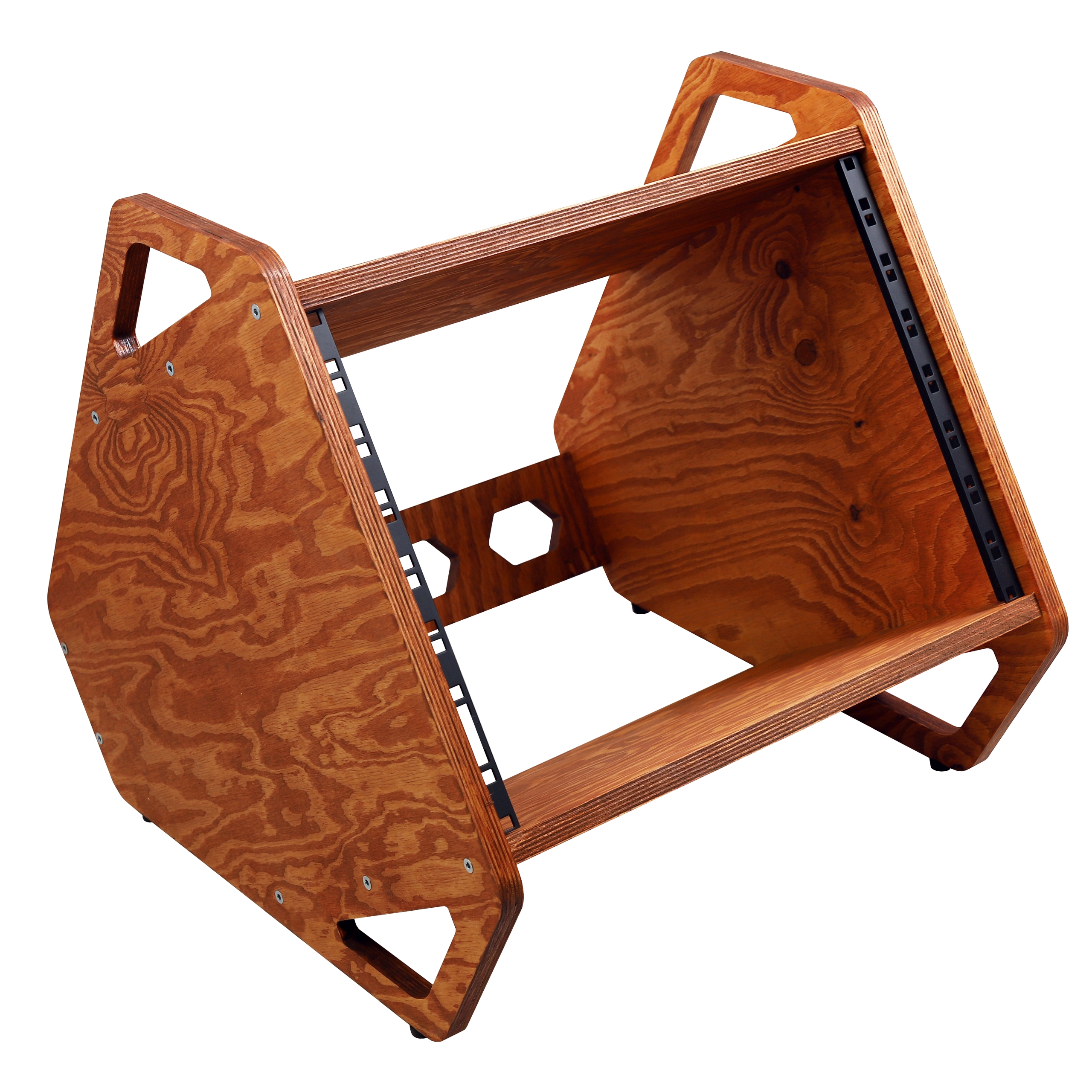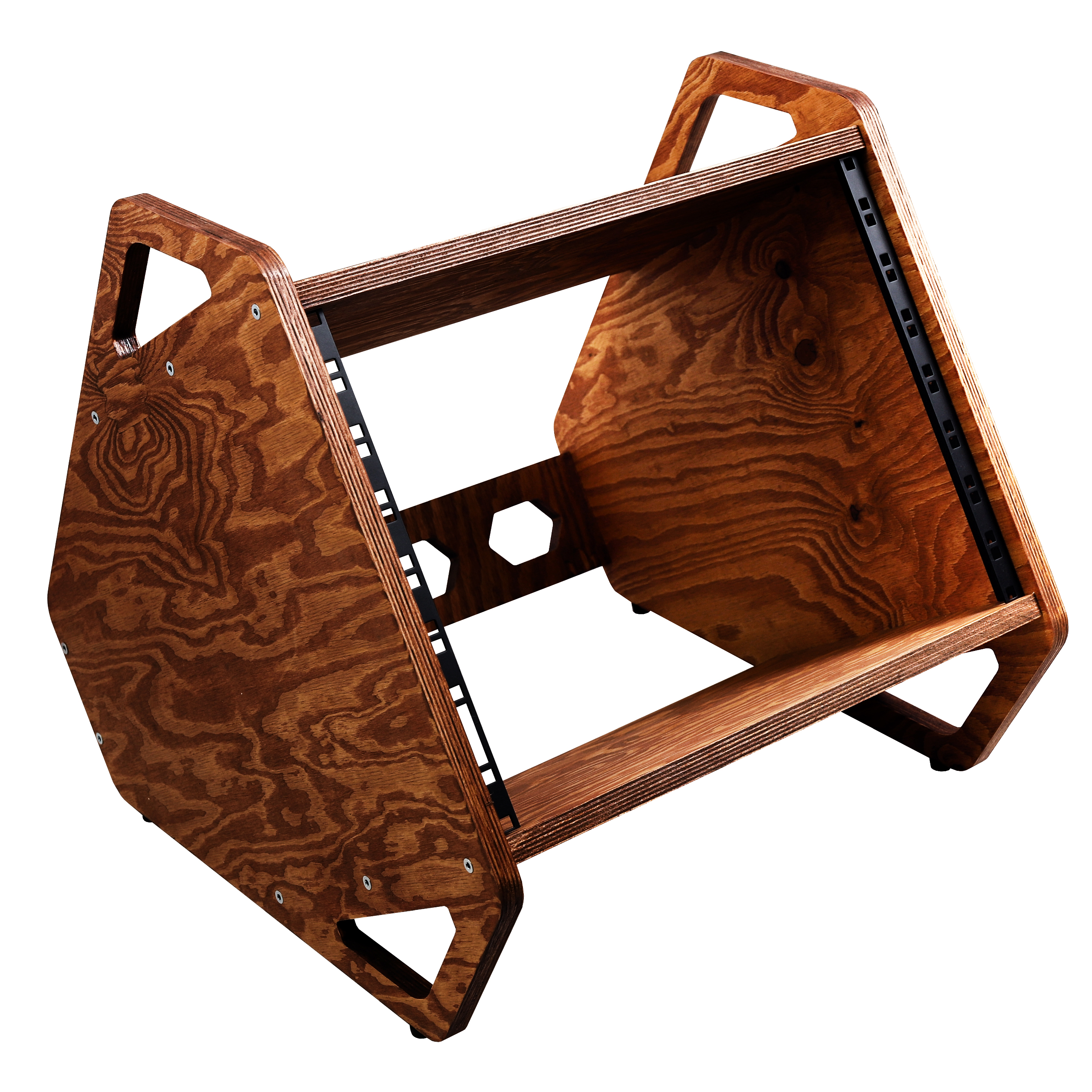 Stojak podłogowy typu Rack 19" wykonany ze sklejki sosnowej o grubości 18-19 mm.