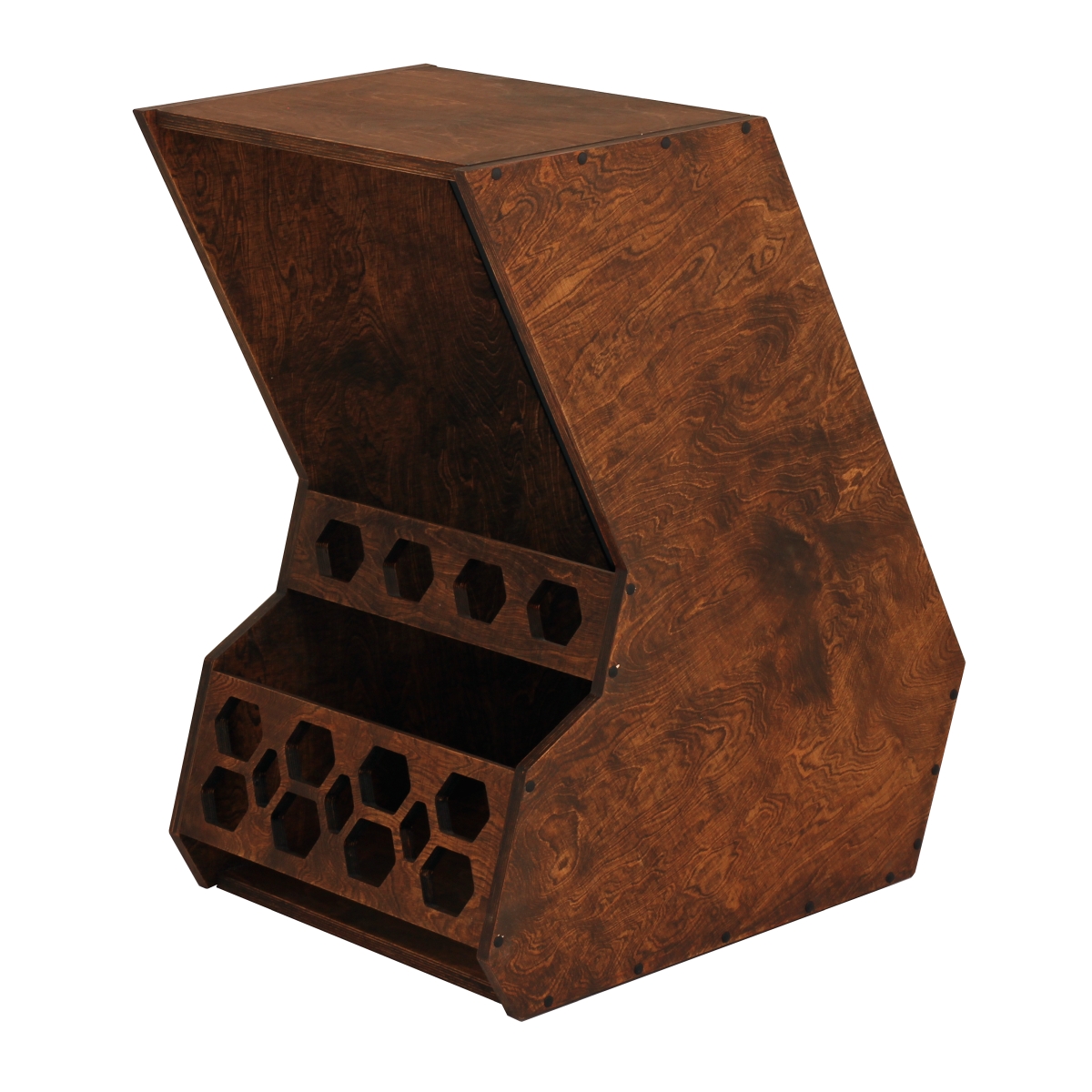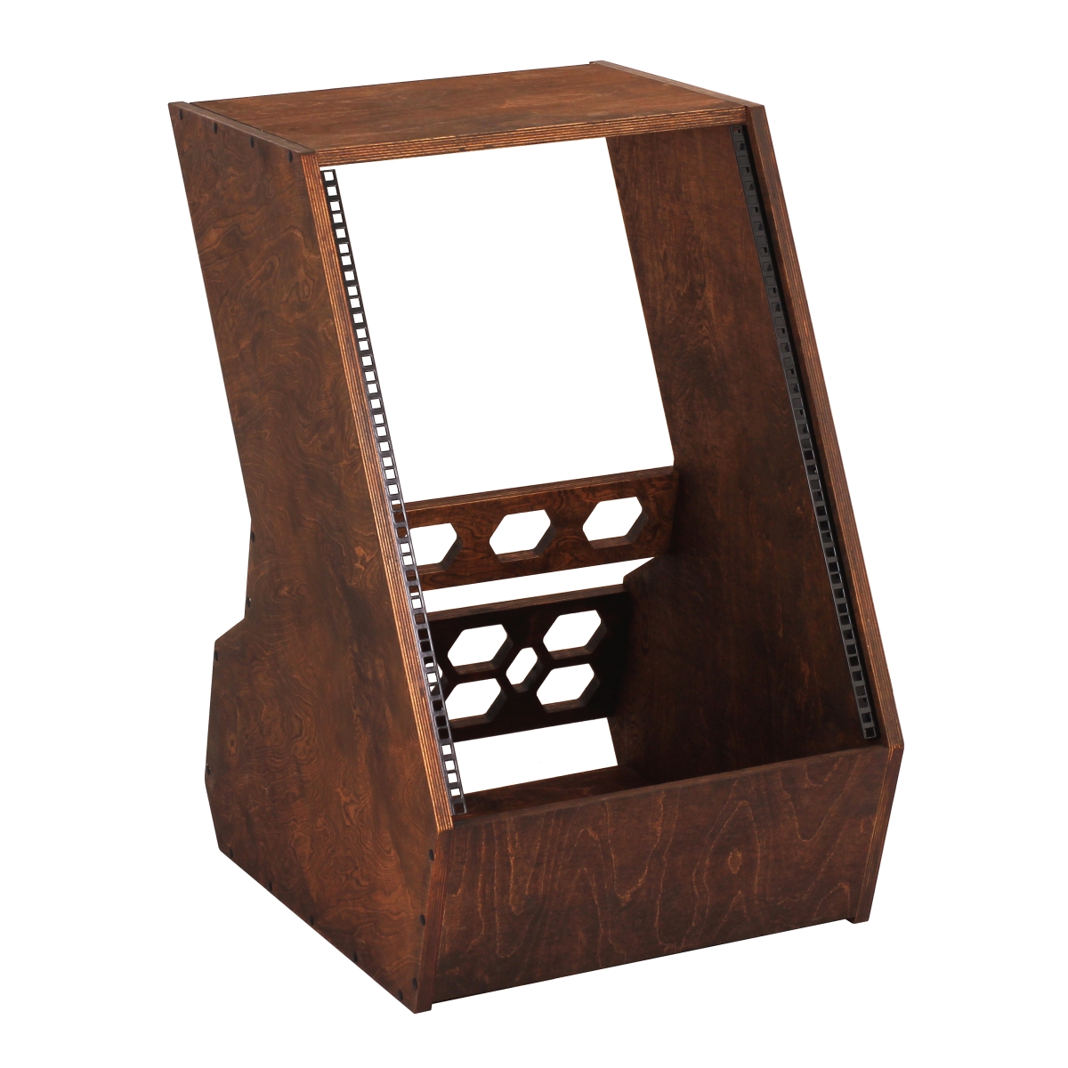 Stojak podłogowy typu Rack 19" wykonany ze sklejki o grubości 18 mm.