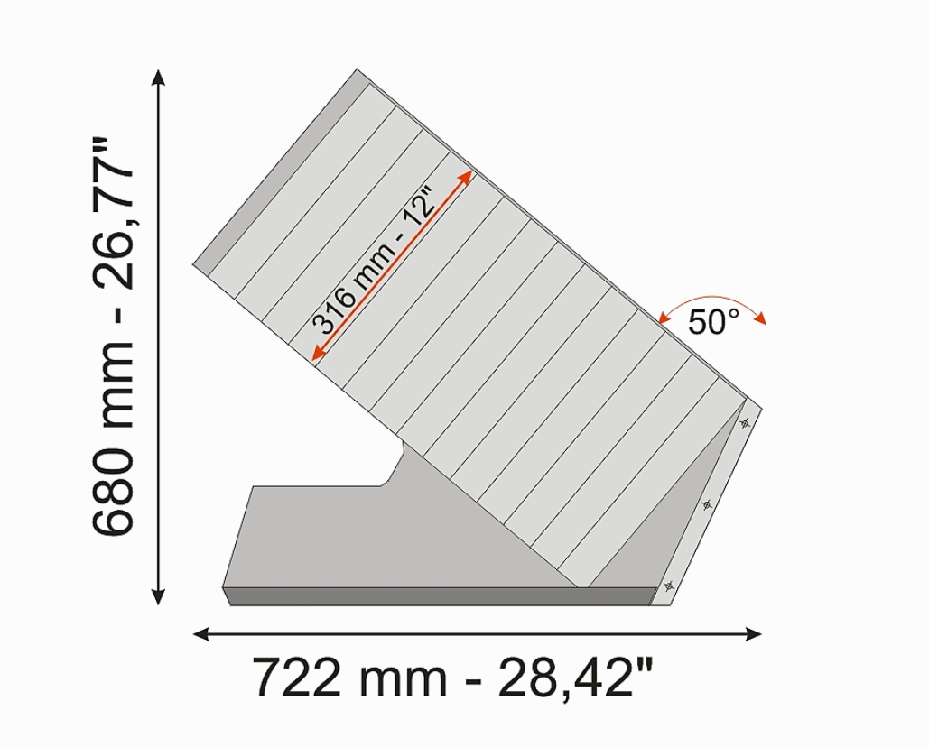 Kąt nachylenia zamontowanego sprzętu 50 stopni.
