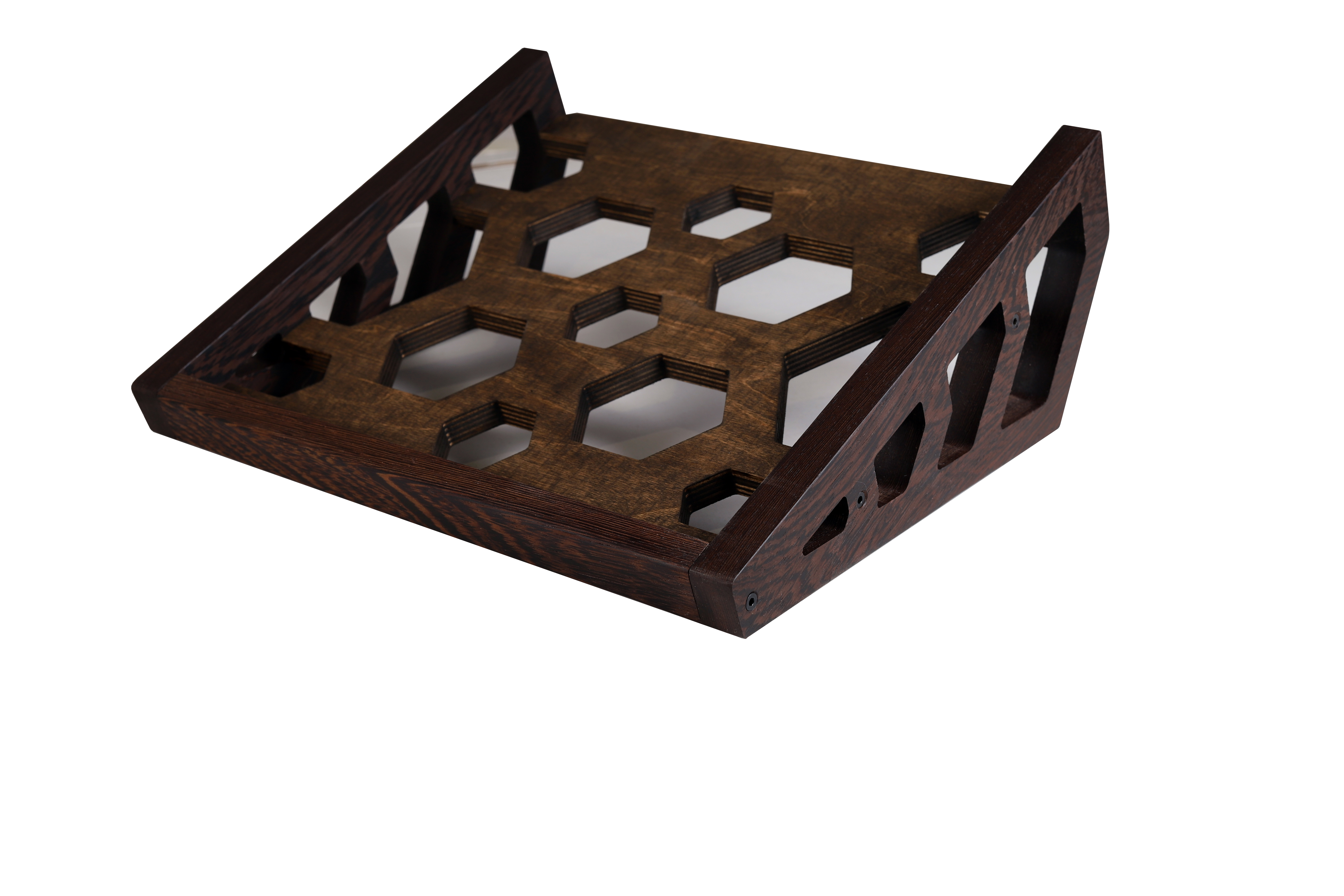Przykładowe zdjęcia stojaków w kolejności dąb, wenge, zebrano.