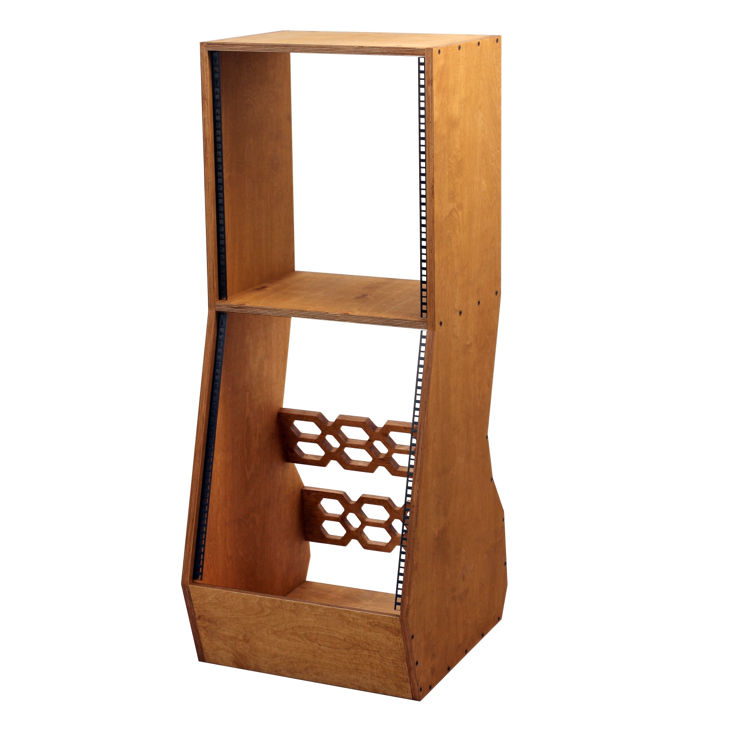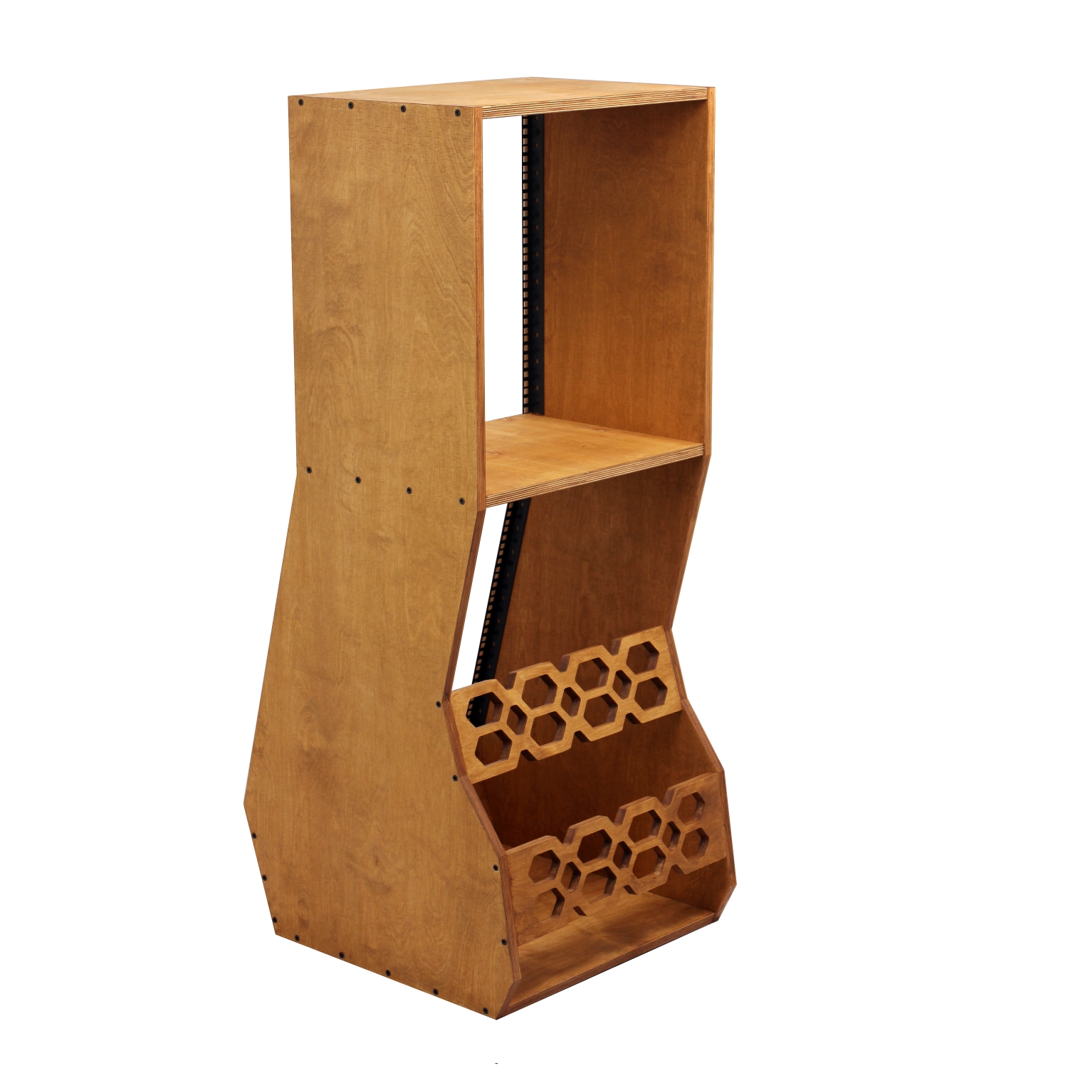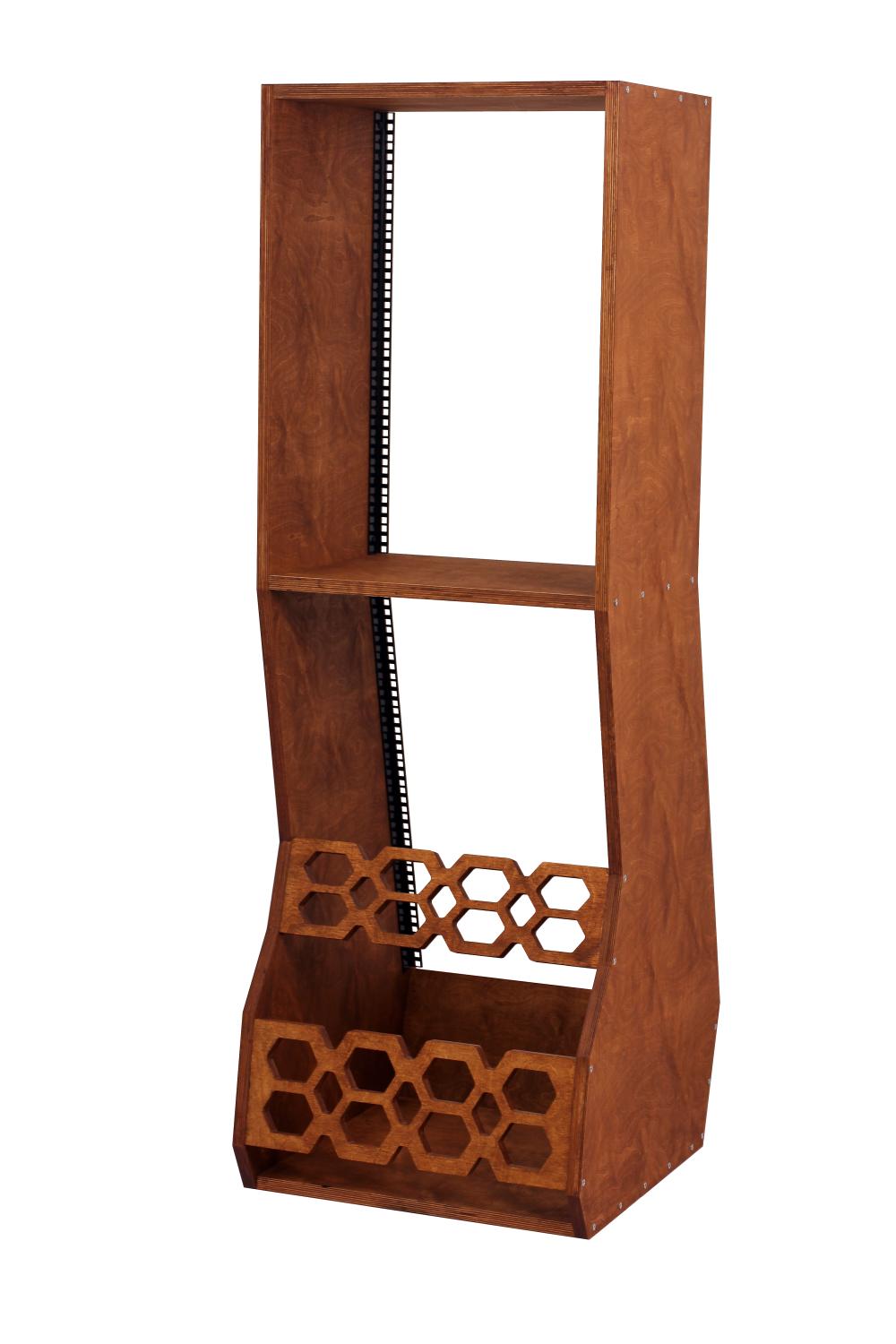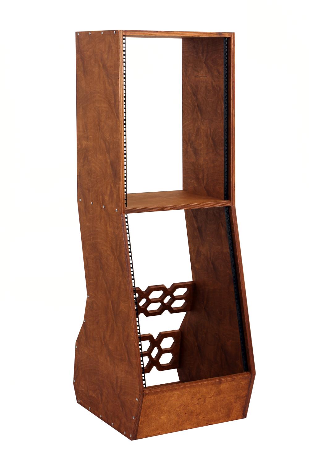 Stojak podłogowy typu Rack 19" wykonany ze sklejki o grubości 18 mm.